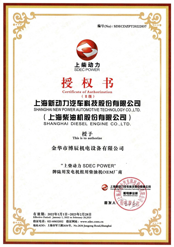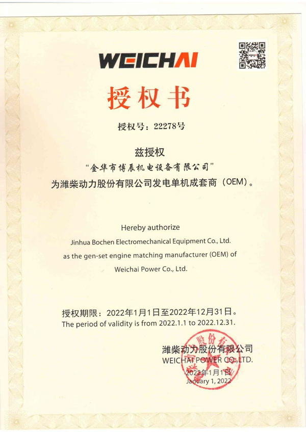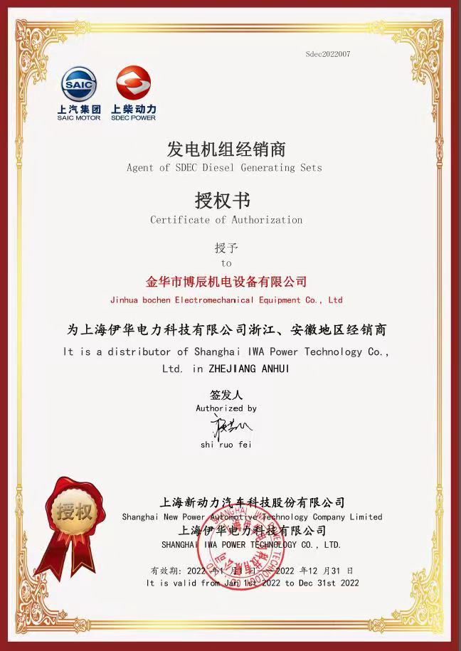 原裝發(fā)電機組經銷商授權書