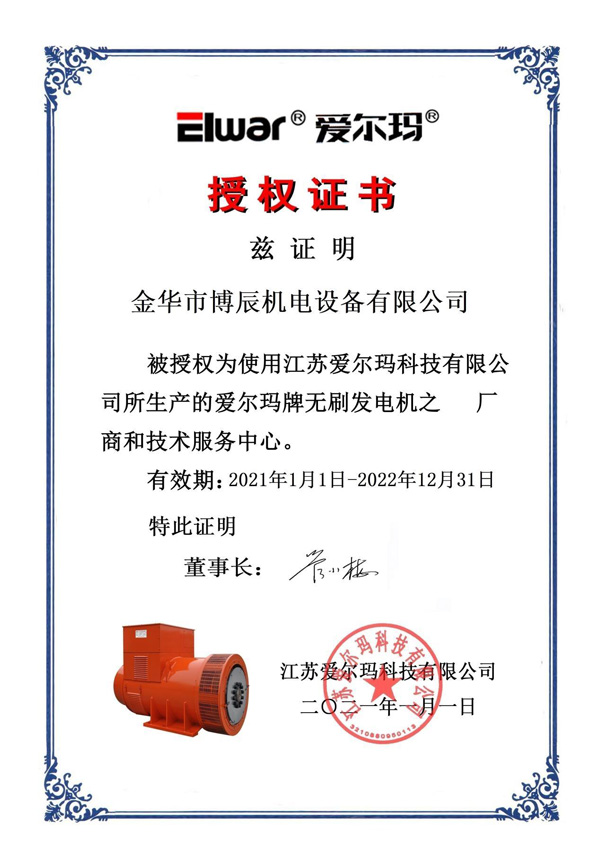 發(fā)電機組經銷商授權書