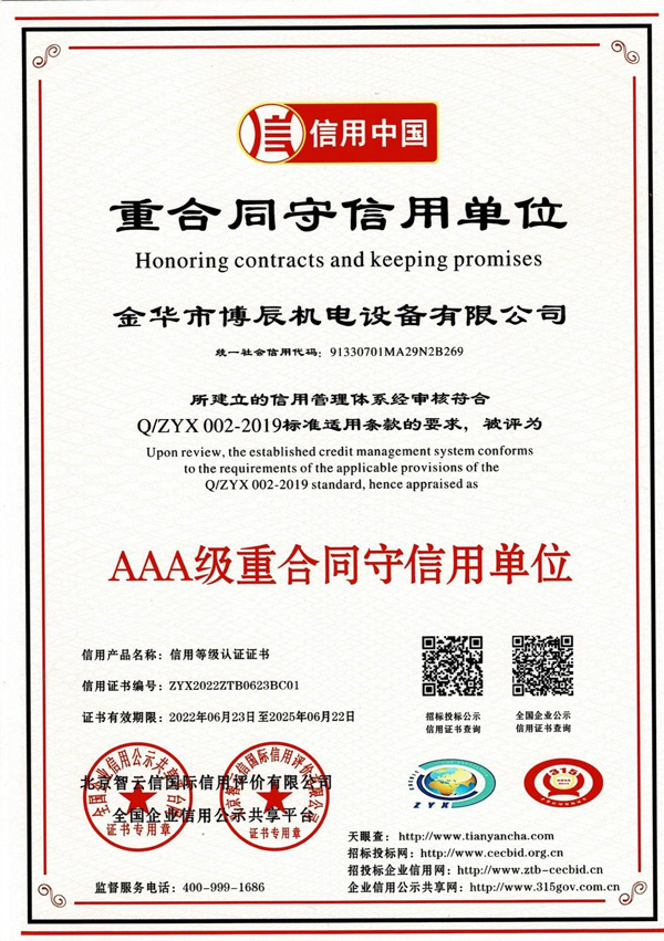 AAA級重合同守信用單位