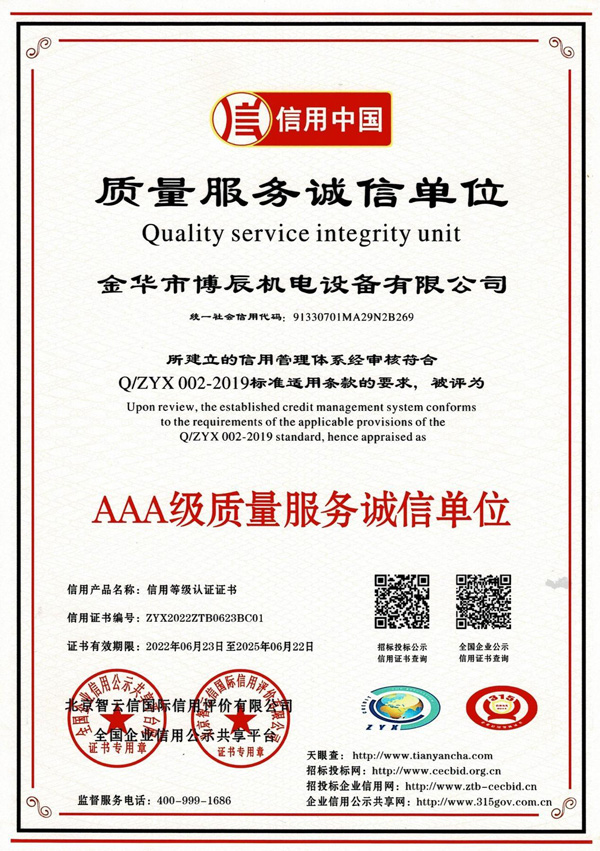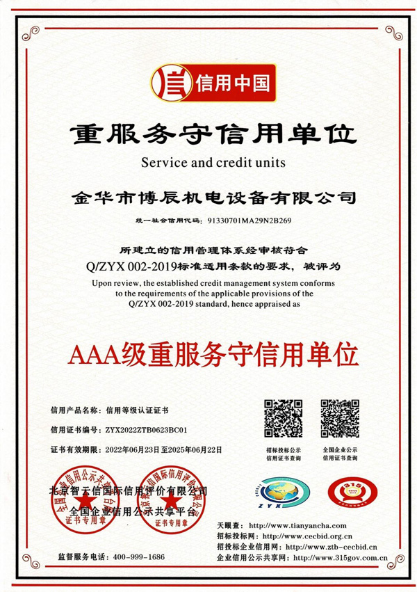 AAA級重服務守信用單位